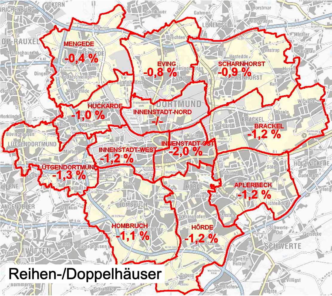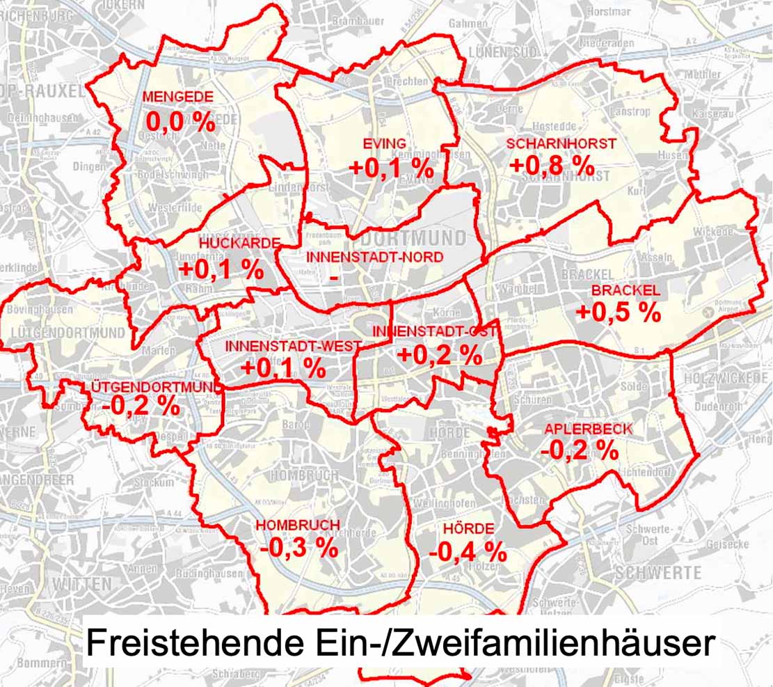 Bei den Einfamilienhäusern gab es allerdings einen Rückgang: Landesweit ging die Zahl um 24 Prozent zurück, in Dortmund aber nur leicht um 1,5 Prozent.