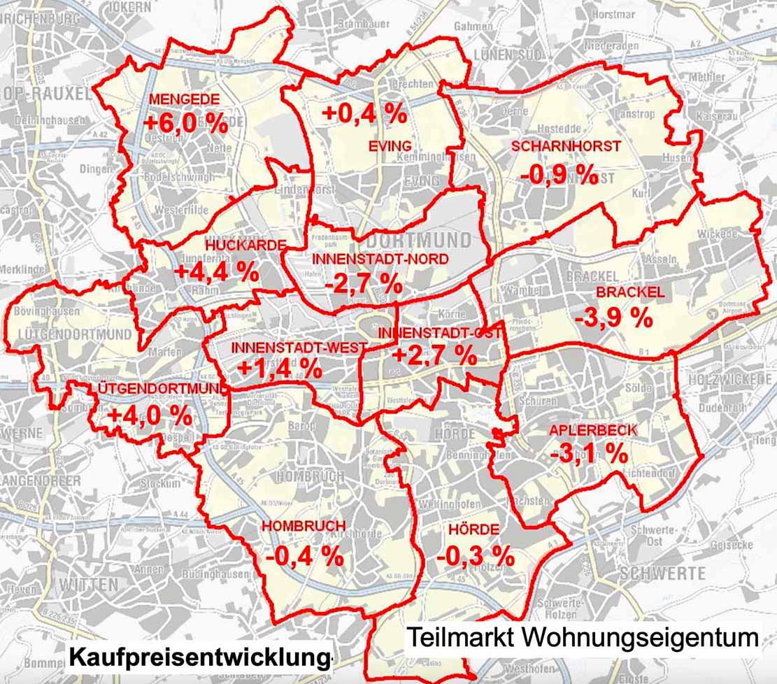 Mehr Details liefert der Halbjahresbericht des Gutachterausschusses für Grundstückswerte in der Stadt Dortmund.