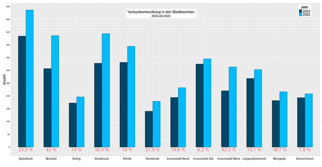 Die Belebung auf dem Grundstücksmarkt und wieder anziehende Preise sind ein gutes Zeichen. „Diese Entwicklung zeigt, dass der Dortmunder Immobilienmarkt trotz wirtschaftlicher Unsicherheiten attraktiv bleibt“, erklärt Christian Hecker, Vorsitzender des Gutachterausschusses für Grundstückswerte in der Stadt Dortmund. „Insbesondere bei bebauten Grundstücken und Wohnungseigentum sehen wir eine starke Nachfrage.“