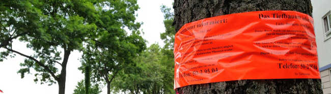 Die betroffenen Bäume sind mit einer orangefarbenen Banderole gekennzeichnet. Ersatzpflanzungen erfolgen – soweit möglich – in der kommenden Pflanzperiode.