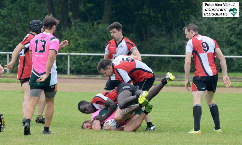 Gleich zwei spannende Spiele bzw. Turniere richtet der Rugby Football Club Dortmund in den Sommerferien aus. Am Samstag hatte das Nordstadt-Team die Vereine aus Münster und Karlshöfen zu Gast. In zwei Wochen findet am gleicher Stelle ein Länderspiel statt – es ist das erste in Dortmund überhaupt und das erste in NRW seit 2009.