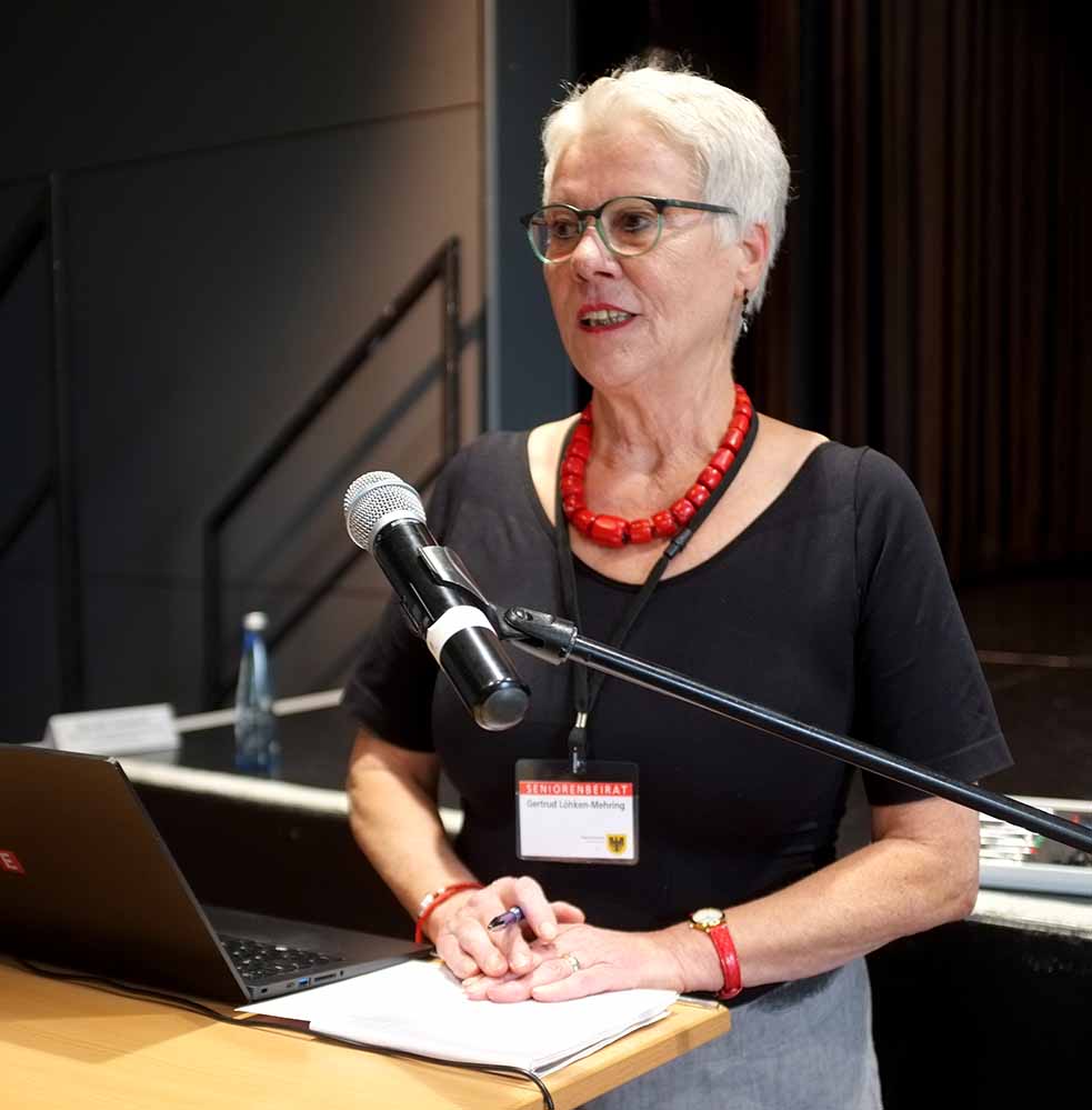 Im Anschluss daran sprach ebenfalls die stellvertretende Vorsitzende des Dortmunder Seniorenbeirates, Gertrud Löhken-Mehring, ein paar einleitende Worte. Desweiteren führte sie als Moderatorin durch die Abfolge der Fachvorträge und die gesamte Veranstaltung. ___STEADY_PAYWALL___