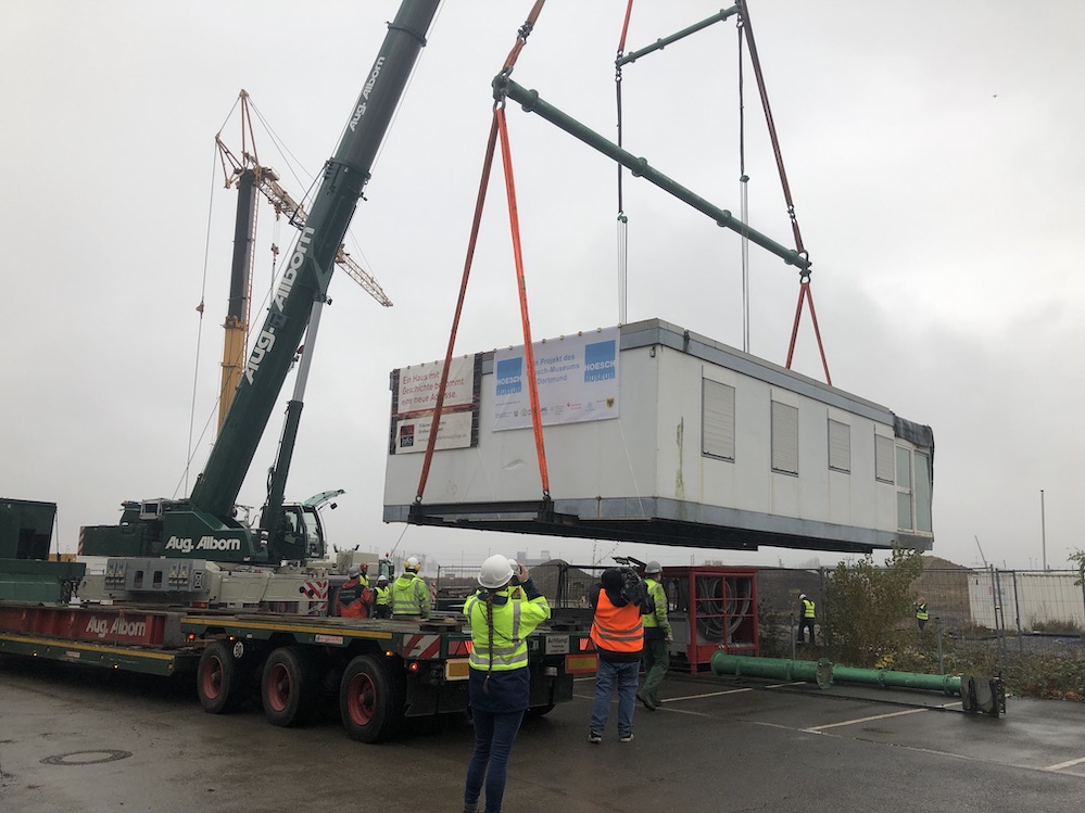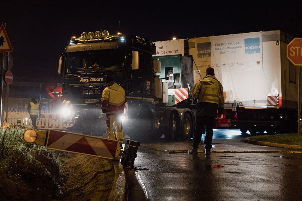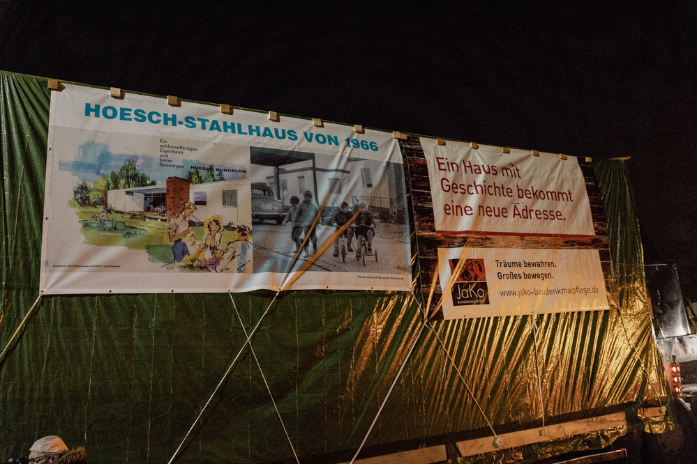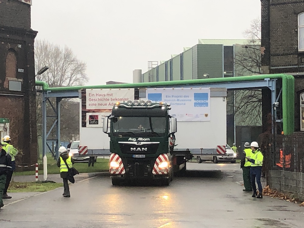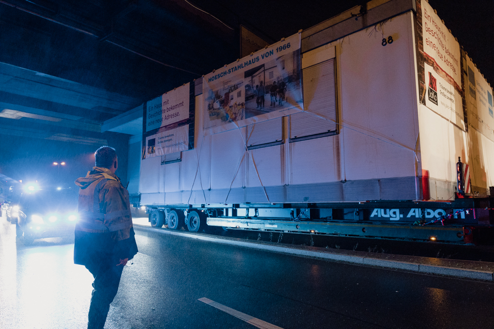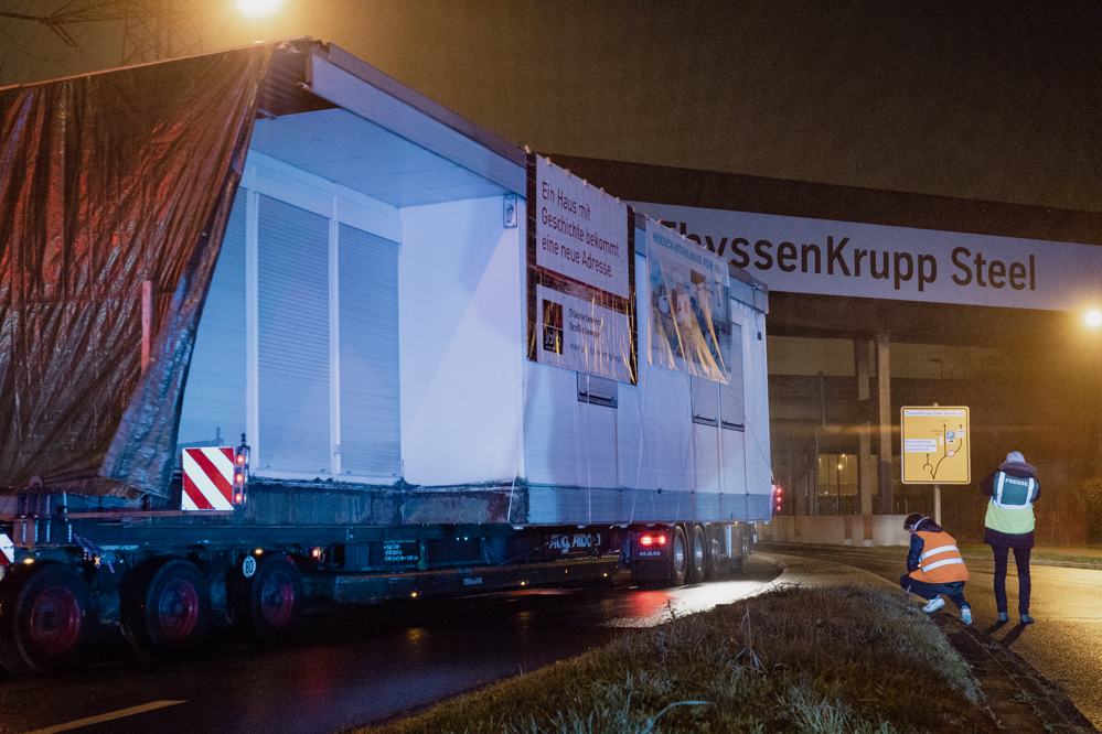 Stahlbungalow reist in der Nacht quer durch die Stadt an den neuen Standort am Hoesch-Museum