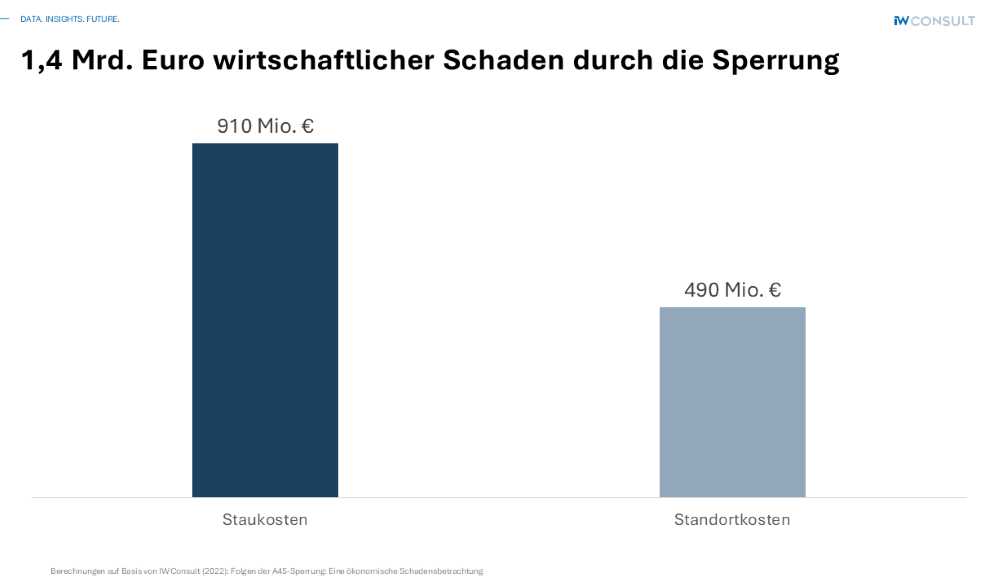Die Abhängigkeit der gesamten Region von der A 45 ist außergewöhnlich hoch und erklärt die überproportional hohen volkswirtschaftlichen Schäden“, erläutert Kempermann.
