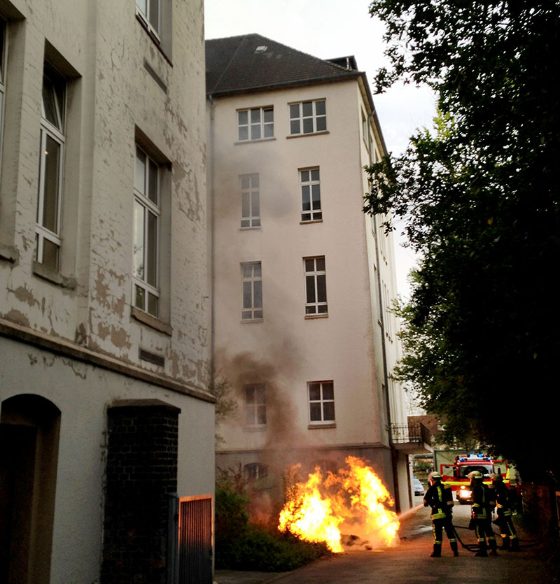 Schlagen dann die Flammen aus dem Haus, wird es für die Wehrleute schwer. Nicht immer ist klar, wie viele Menschen sich in einem Gebäude aufhalten; längst nicht jeder Bewohner ist offiziell gemeldet. Und so muss jeder Raum unter schwerem Atemschutz kontrolliert werden. Vom Keller bis zum Dach.