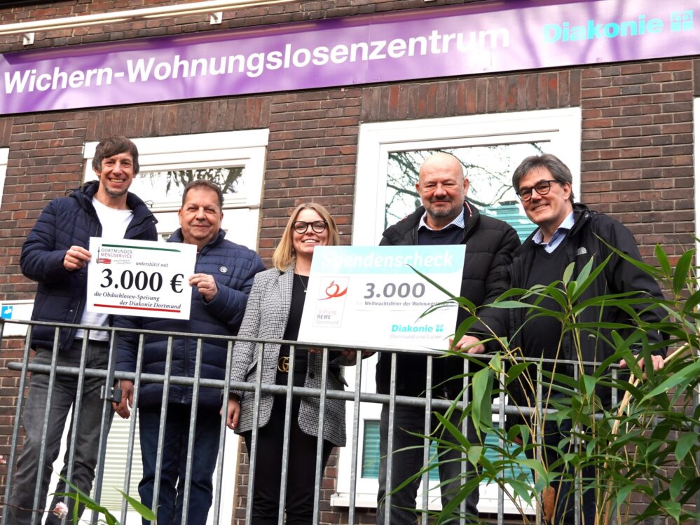 Die Stiftung REWE Dortmund stellt erneut 3000 Euro für die Weihnachtsfeier zur Verfügung. Der Dortmunder Menüservice begleitet die Veranstaltung bereits zum 25. Mal und sorgt mit seinem Buffet, ebenfalls im Wert von 3000 Euro, für das leibliche Wohl aller Gäste. Die Spenden wurden wenige Tage vor der Feier an die Diakonie übergeben, um die Vorbereitungen zu sichern.