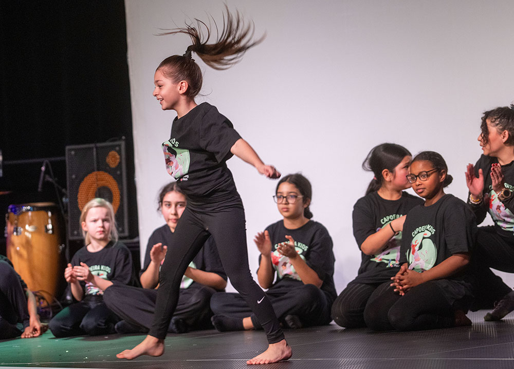 Schwungvoll ging es daher, als eine Gruppe Kinder eine Capoira-Performance darbot. So beeindruckend, wie sich die Kinder die Elemente des brasilianischen Kampftanzes erarbeitet haben, waren auch die tänzerischen Darbietungen der „Sonnenblümchen“, einer Gruppe der ganz kleinen Kinder, die für ihren Bühnenbeitrag erste Figuren des Ballett erarbeitet hatten. Das Publikum dankte allen Akteur:innen mit langanhaltendem Applaus.