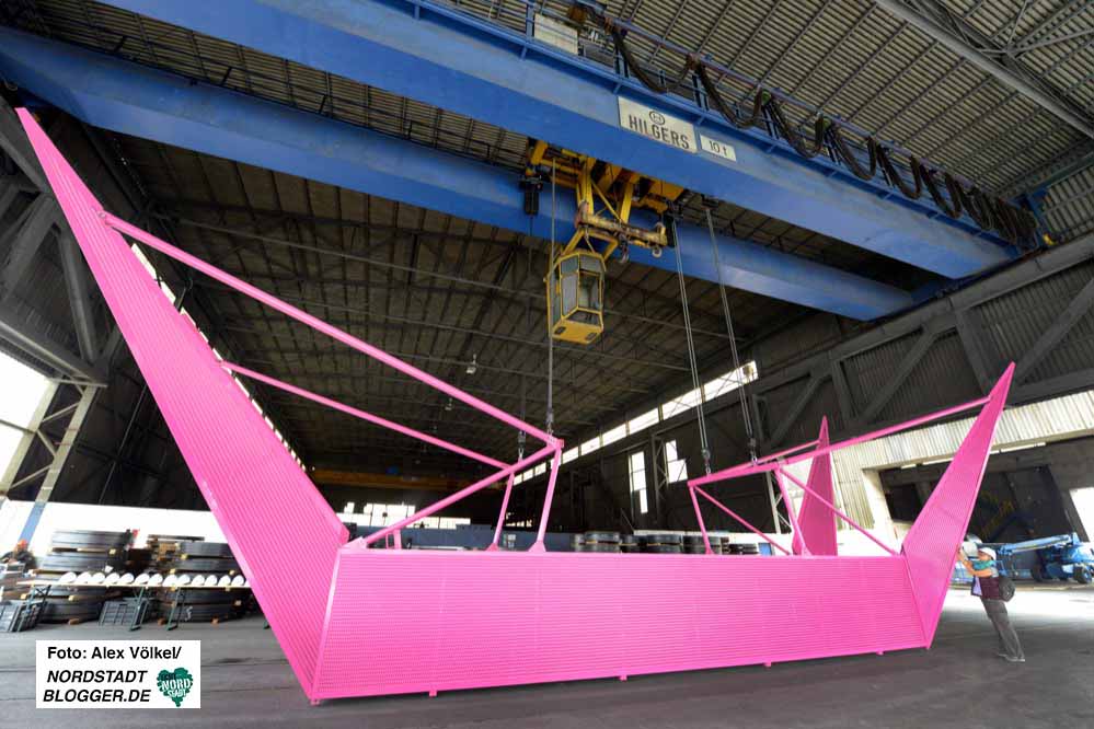 Der Freizeitwert des Dortmunder Hafens lässt sich deutlich steigern, wie wir wissen. Bis 24. September lockt jetzt aber ein ungewöhnliches Kunsterlebnis ans Wasser – Abfahrt neben der „Tyde“. Bitte einsteigen!