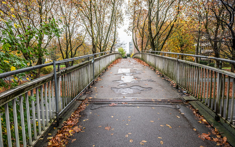Die im Jahr 1980 gebaute Brücke ist sanierungsbedürftig. Zur umfangreichen Instandsetzung gehört ein neuer Gehweg-Belag, ein neuer Anstrich und ein neues Geländer. Auch die Stützbauwerke und die Zugangsrampe auf der Nordseite werden saniert.