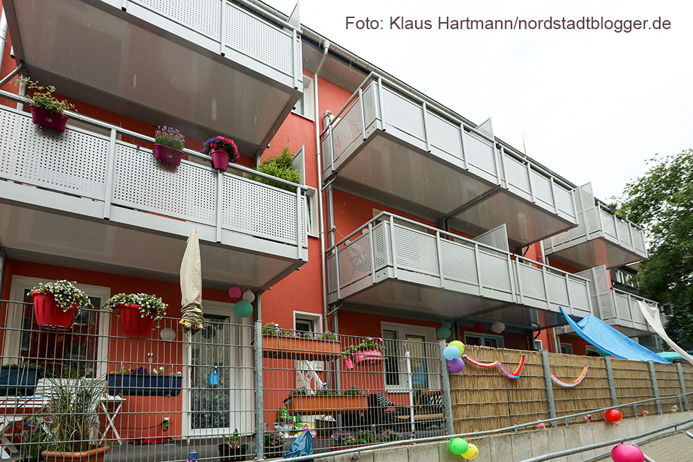 Fest des inklusiven Wohnprojektes Nettelbeckstraße. Die neuen Balkone an den Häusern in der Nettelbeck-Straße