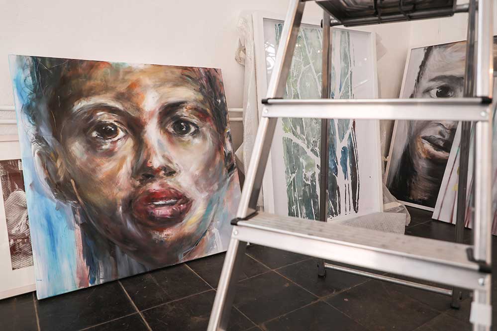 Durch ihre Arbeit im Flüchtlingsprojekt „angekommen in Deiner Stadt Dortmund, weiß die gebürtige Soesterin, wovon sie redet, ist sie doch ständig mit den unterschiedlichen, oft dramatischen Schicksalen von Flüchtlingen konfrontiert. So findet sich in der Ausstellung auch eine Porträt-Reihe, die Awa zeigt, eine junge Afrikanerin, die sich im Alter von 14 Jahren allein, ohne Begleitung ihrer Eltern oder anderer Bezugspersonen zu Fuß auf den Weg nach Deutschland machte. Heute ist Awa 18 Jahre alt.