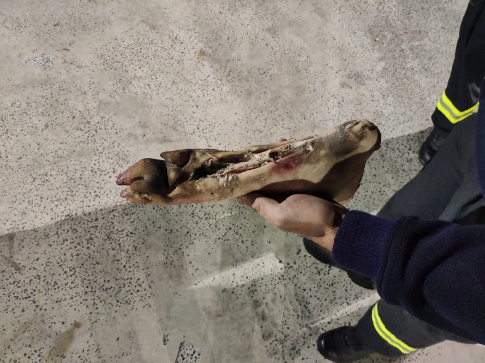 Welche Gefahr illegale Böller bieten, demonstrierte Feuerwerker Seck im Anschluss auf dem Außengelände. Zwei Schweinepfoten dienten dabei zur Veranschaulichung. Nach der Explosion ist eine der Pfoten einige meter entfernt aufzufindenden. Die Knochen wurden durch die Sprengkraft gebrochen. Bei Menschen kann es zudem zu Verletzungen der Lunge kommen. Die könne durch denn starken Druckunterschied sogar platzen, erklärt Schröer.