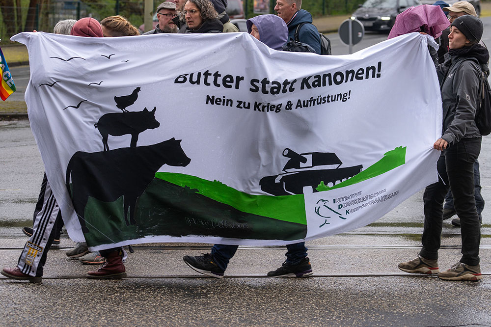„Die Kriege beenden, die Aufrüstung stoppen! Friedensfähigkeit statt Kriegstüchtigkeit!“, so das Motto des diesjährigen Marsches. Damit bleibt die Bewegung ihrem Wunsch einer Welt ohne Waffen treu.