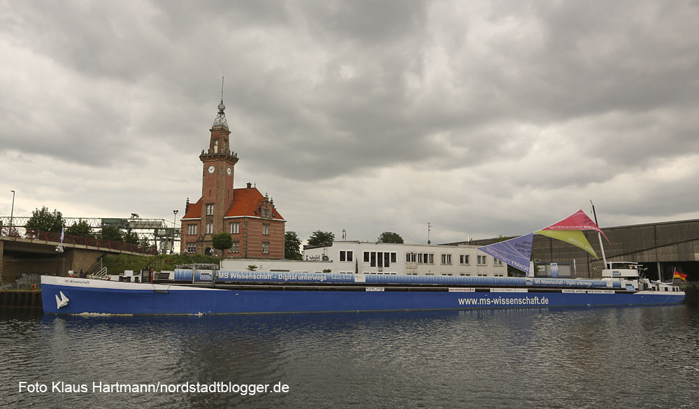 Das Ausstellungsschiff „MS Wissenschaft“ macht auf seiner großen Tour durch 40 Städte in Deutschland und Österreich vom 12. bis 15. Juni 2015 in Dortmund Halt. Das Schiff liegt von Freitag bis Montag im Stadthafen – unmittelbar vor dem Alten Hafenamt.