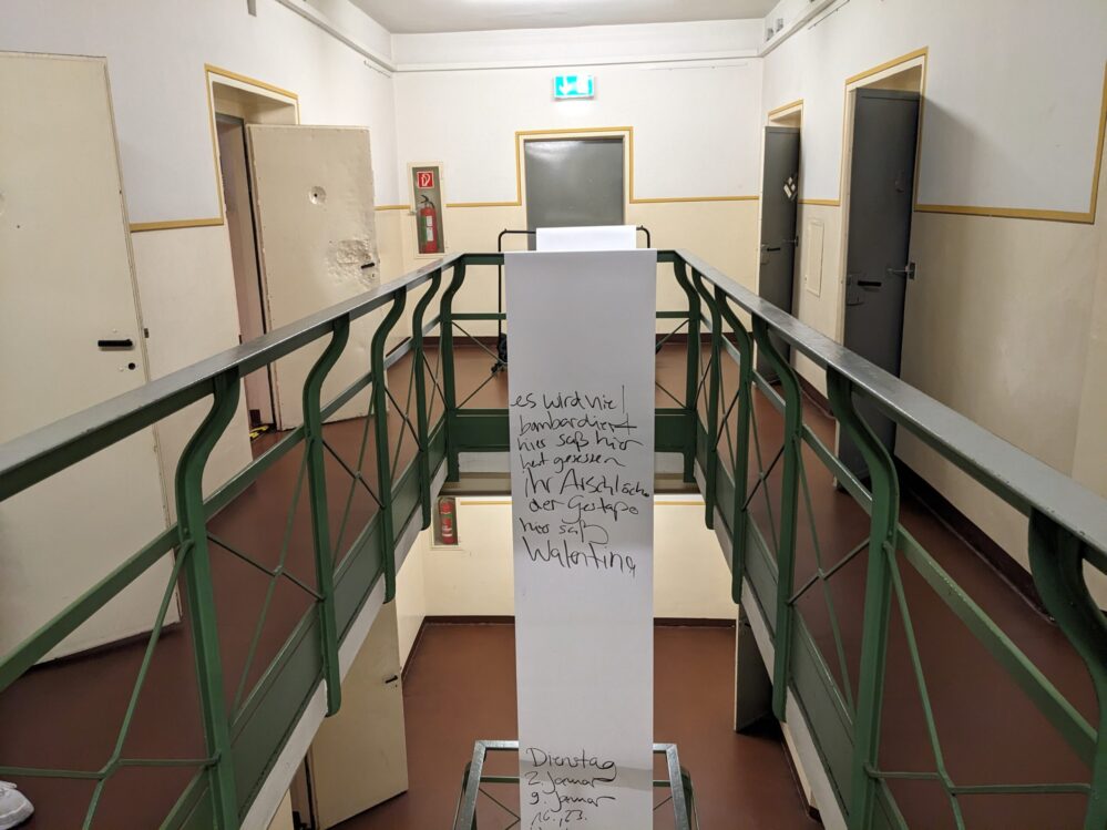 Neuer Ort, neues Thema: In dem ehemaligen Polizei- und Gestapo-Gefängnis Steinwache am Dortmunder Hauptbahnhof lieferte Nicola Schubert eine ergreifende Performance über die Geschichte von einzelnen Insassinnen und Mitarbeiter:innen während der NS-Zeit. Ausgestattet mit Kopfhörern folgten die Teilnehmer:innen der Performance-Künstlerin durch die drei Etagen der Steinwache. Sie untermalte schauspielerisch die Audio-Spur auf den Kopfhörern.