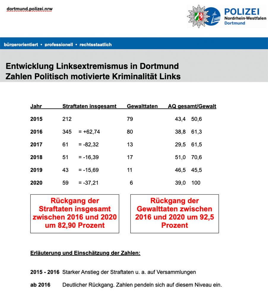 Die rechtsextremistischen Straf- und Gewalttaten sind in Dortmund deutlich rückläufig