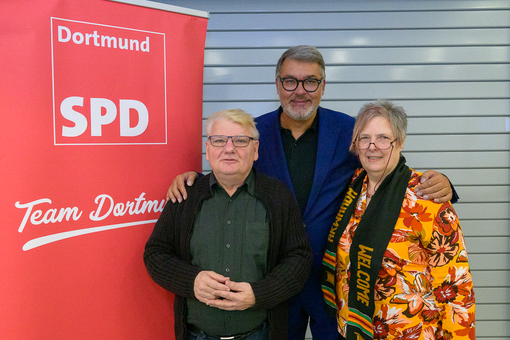 Jens Peick, Bundestagsabgeordneter und Vorsitzender des Unterbezirks Dortmund, greift das in seiner Begrüßung auf. Er sieht die SPD in Dortmund nicht als Staatspartei, fern der Menschen. Sondern sagt: „Wir sind da, wo die Menschen sind.“