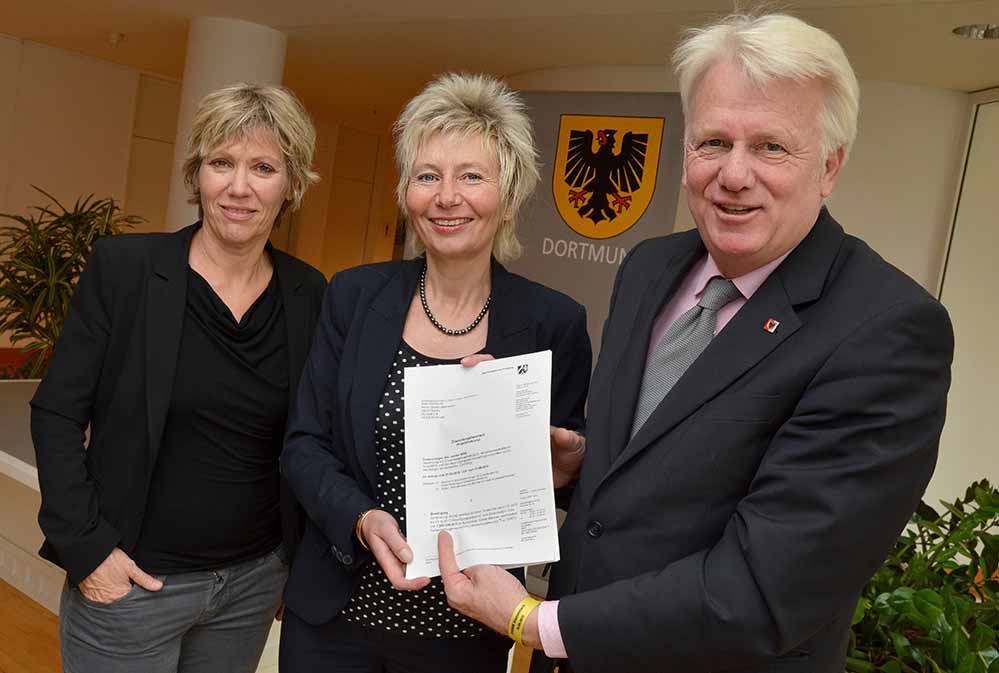 Regierungspräsidentin Diana Ewert übergab den entsprechenden Zuwendungsbescheid heute im Dortmunder Rathaus an Oberbürgermeister Ullrich Sierau.
