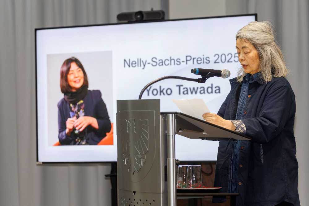In ihrer Dankesrede erinnerte Yoko Tawada an die Namensgeberin des Preises, Nelly Sachs, und an deren Fluchterfahrung vor dem Holocaust und dem Nazi-Regime. „Das Gefühl, verjagt und vernichtet werden zu sollen, hörte nie auf“, so Tawada.
