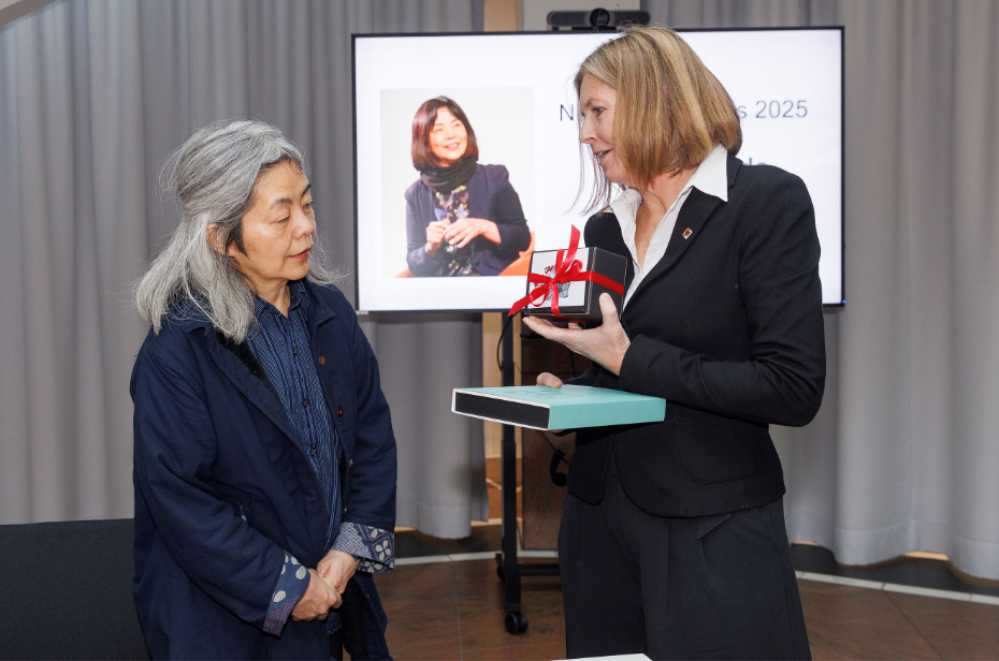 Yoko Tawada und Bürgermeisterin Britta Gövert bei der Preisverleihung 2025. Foto: Stadt Dortmund / Benito Barajas