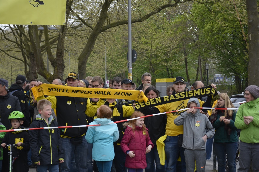 Alle, die dazu einen Beitrag leisten wollten, waren herzlich eingeladen, mitzulaufen: mit ihren Fahnen, Trikots und Schals, von welchem Verein, Club etc. auch immer.
