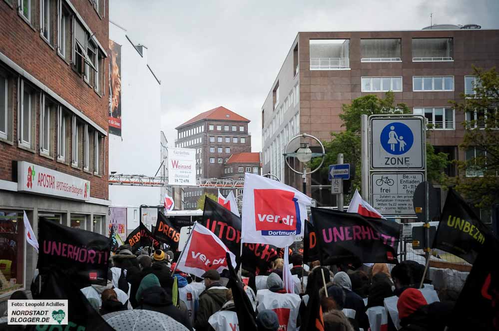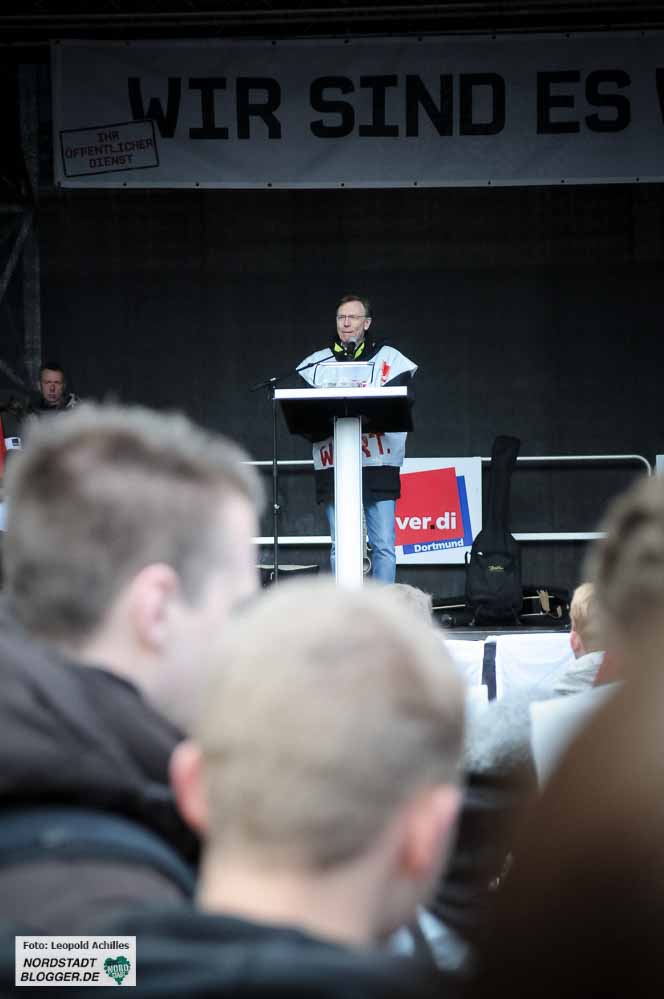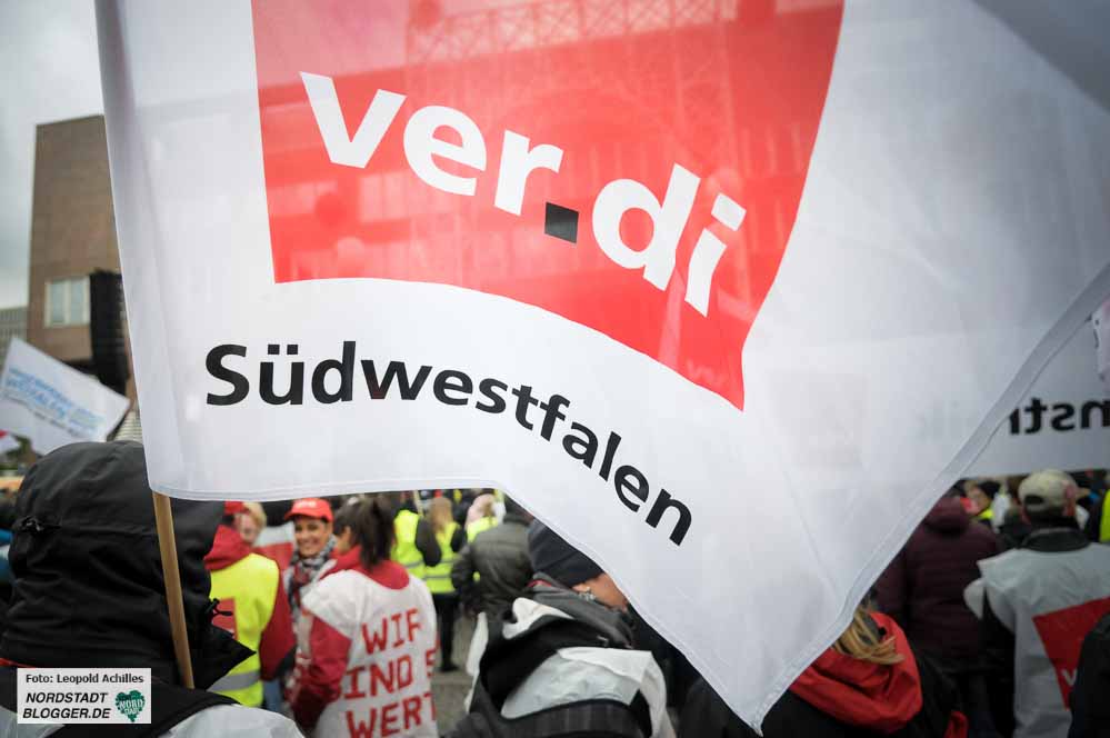 Als eine „Provokation“ bezeichnete Jutta Reiter vom DGB Dortmund-Hellweg das 3-Preozent-Angebot für der Verdi-Beschäftigten und das 0,9-Prozent-Angebot der Metall-Arbeitgeber: „Wir fordern gute Löhne für gute Arbeit“, meinte Reiter und wünschte den Verdi-Warnstreikenden einen „guten Erfolg“.