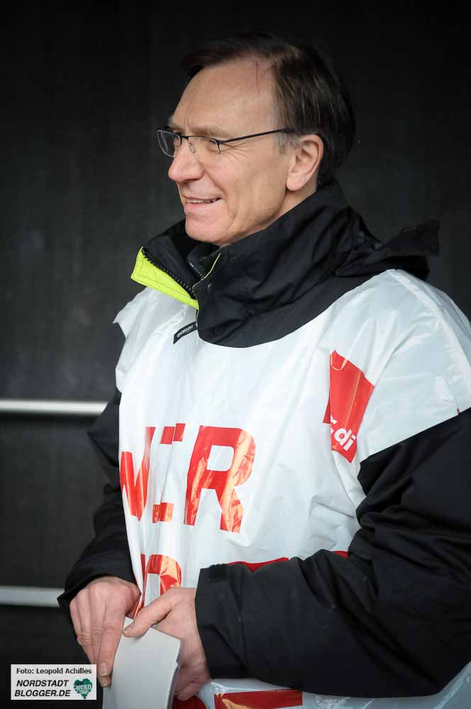 „Wir reagieren auf das provozierend niedrige Angebot der Arbeitgeber“, machte Michael Bürger, Verdi-Geschäftsführer, die Richtung deutlich: „Wenn hier nicht erheblich nachgebessert wird, kann es keine Einigung am Verhandlungstisch geben“. Mit lauten Trillerpfeifen und viel Beifall unterstützten die Streikenden diese Forderungen.