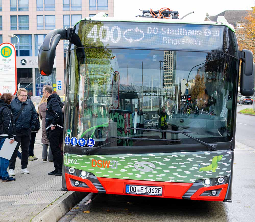 Eine weitere Herausforderung in Sachen Verkehrswende sind die E-Busse: Bisher hat DSW21 einschließlich der entsprechenden Ladeinfrastruktur 30 E-Busse gefördert bekommen und plant darüber hinaus 48 weitere. Gefördert wird der Betrag der Mehrkosten eines E-Busses gegenüber einem herkömmlichen Dieselbus. „Da reden wir nochmal über ein Investitionsvolumen von rund 40 Millionen. Aber auch nur dann, wenn es entsprechende Förderungen gibt“, unterstreicht Jacoby.