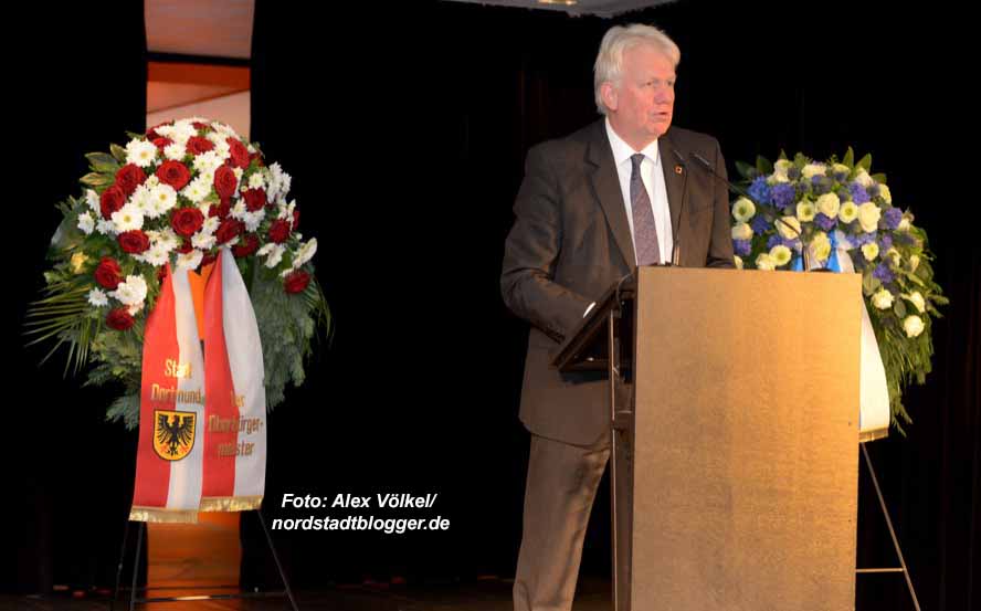 Auch Oberbürgermeister Ullrich Sierau und später der Theatermacher Gerd Buurmann gingen in ihren Reden auf die Geschichte ein, ehe sie daraus Schlüsse für unsere heutige Zeit zogen.