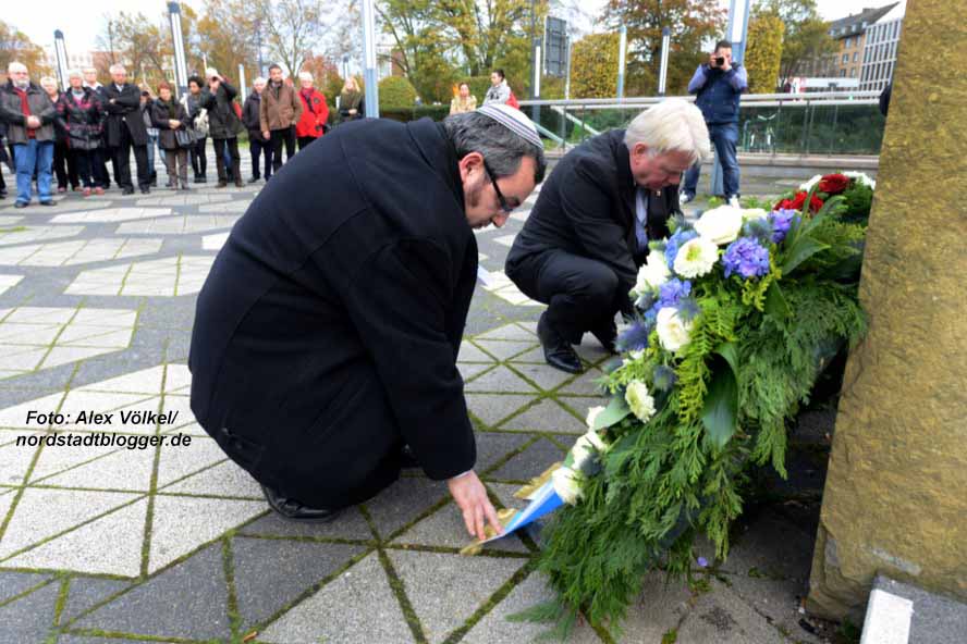 Zum Abschluss sprach Rabbiner Avichai Apel ein Gebet. Mit der Kranzniederlegung auf dem Platz der alten Synagoge endete die Gedenkveranstaltung. Sie dürfte den Teilnehmern noch lange nachgehen.