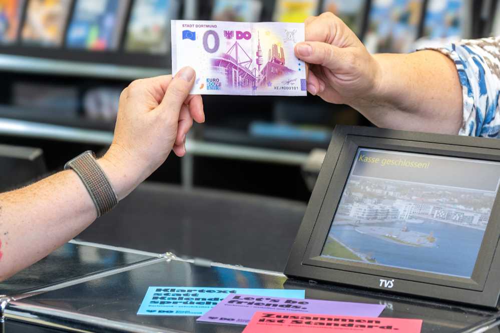 Der beliebte Null-Euro-Schein mit Dortmunder Motiven ist zurück. Das Souvenir zeigt erneut bekannte Wahrzeichen der Stadt und ist auch als limitierte Jubiläums-Edition erhältlich. Kaufen können Interessierte den Schein ab sofort in der Tourist-Information an der Kampstraße.
