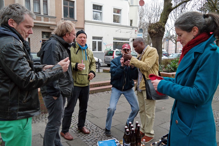 „Möglicherweise kommt jetzt jemand aus der neu formierten Gemeinschaft auf die Idee, die begehrte Flüssigkeit zukünftig selbst zu brauen, anstatt sie tagtäglich vom Supermarkt nebenan zu beziehen“, sagt Frank Bölter, der gemeinsam mit Jana Erlenkamp die Aktion von Borsig11 durchzieht.