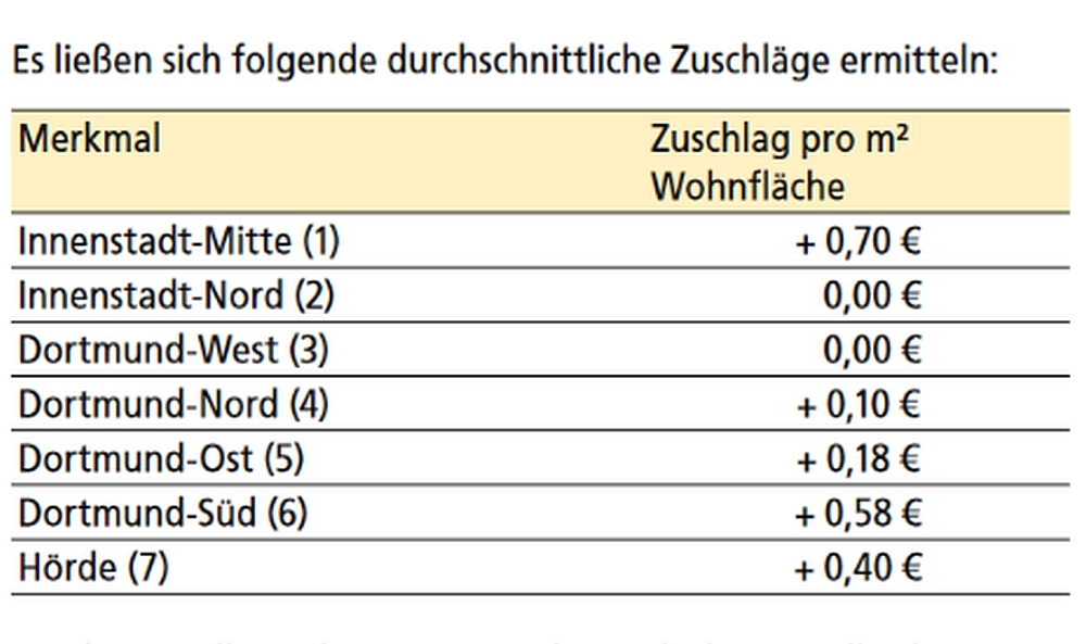Mietspiegel Dortmund 2019: Zuschläge nach Gebietskulissen
