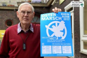 Joachim Schramm, Landesgeschäftsführer der Deutschen Friedensgesellschaft – Vereinigten KriegsdienstgegnerInnen in NRW, machte im Vorfeld der Traditionsveranstaltung deutlich, um was es beim Ostermarsch geht. „Wir schauen ja alle mit Entsetzen auf Syrien und den Irak. Doch wir haben da nicht nur einzelne Vorfälle wie den Giftgasangriff vor Augen oder den westlichen Angriff auf eine Schule in Rakaa, wo im Raum steht, dass deutsche Tornados Aufklärungsdaten geliefert haben“, so Schramm.
