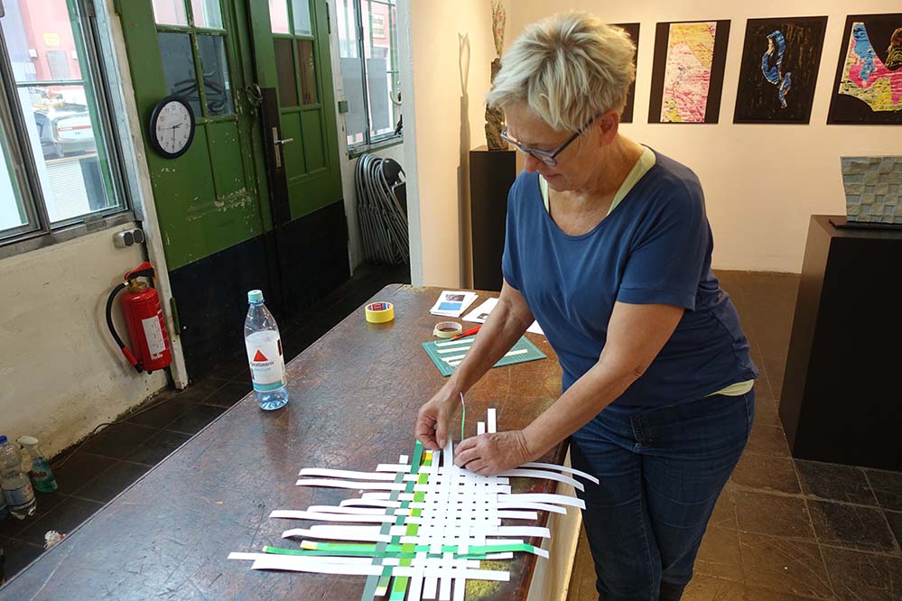 „Drunter und Drüber – weil es Spaß macht!“ sagt Sabine Klemp beim Pressegespräch mit Nordstadtblogger vor der Eröffnung ihrer Ausstellung in der Galerie Fischer im Depot. Klemp arbeitet gerne mit der Grundform des Rechtecks oder der Raute und bearbeitet in dieser Weise verschiedene Materialien wie Steine oder Papier. Ihr grundsätzliches Thema, welches sich wie ein roter Faden durch ihre Werke zieht, ist Verflochtenes. Die Ausstellung eröffnet am 31. August 2018 ab 19 Uhr und wird bis zum 9. September 2018 zu sehen sein.