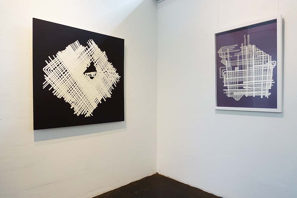 Daneben präsentiert die Künstlerin Siebdrucke, die ebenfalls wie Plastiken strukturiert sind und in den Raum hineingreifen. „Strukturen aufzuzeigen ist mir wichtig“, sagt Klemp. „Geradliniges oder reines Chaos ist langweilig, daher ist beides immer an verschiedenen Stellen wie ein Bruch in der jeweiligen Komposition.“ Dies ist sowohl in den Flechtwerken, als auch in den Siebdrucken, wie auch Skulpturen zu erkennen.