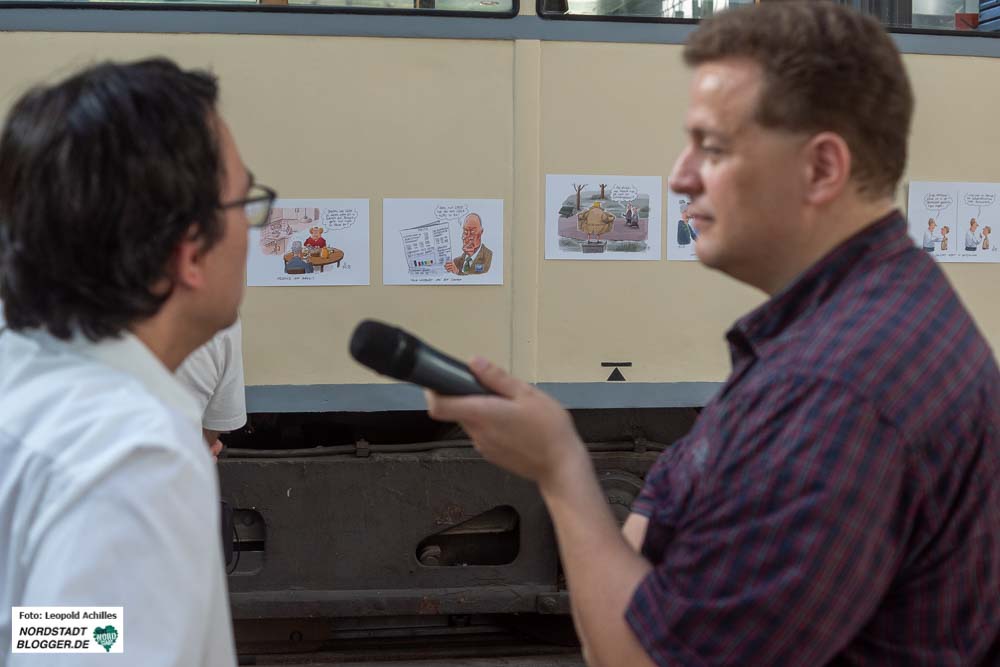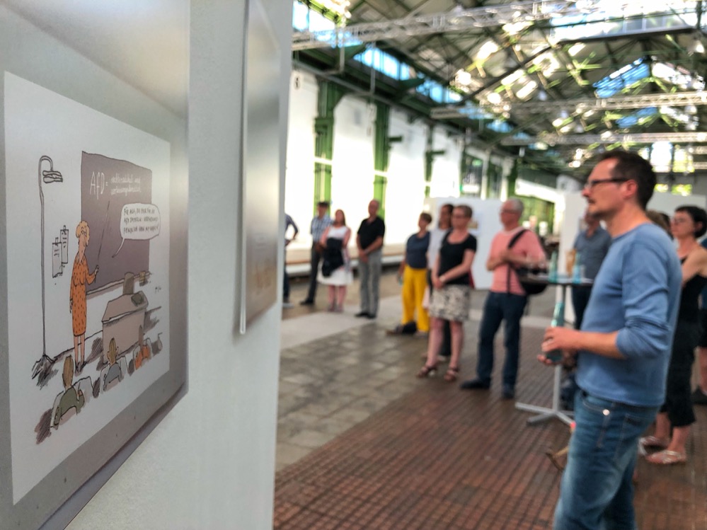Diese Wertschätzung für die KünstlerInnen untermauerte er, indem er den renommierten Karikaturisten Heiko Sakurai einlud. Dieser gab im Rahmen der Extraschicht im Depot Einblicke faszinierende Einblicke in die Arbeit eines politischen Karikaturisten und stellte in einer kleinen Zusatz-Ausstellung seine Lieblingsarbeiten des Jahres 2018 vor.