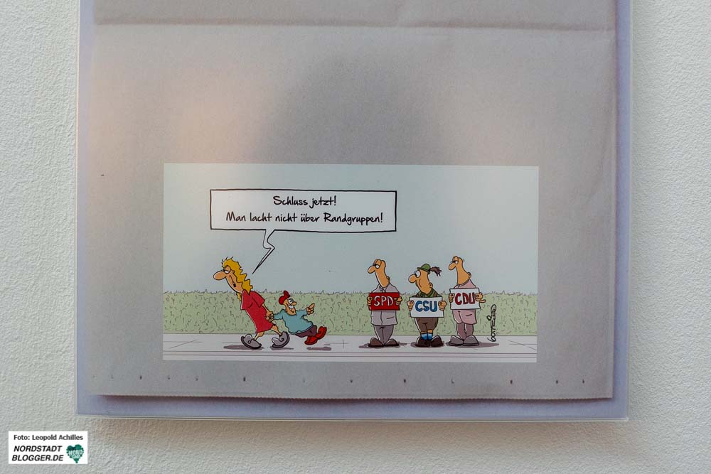 Noch bis Samstag sind die besten politischen Karikaturen Deutschlands im Rahmen der „Rückblende“-Ausstellung im Depot in der Nordstadt zu sehen. Waren als Premiere in Dortmund in diesem Jahr nur der Karikaturenteil plus die prämierten Fotografien ausgestellt, so wird das Depot im nächsten Jahr regulärer Standort der „Rückblende“-Tour quer durch Deutschland. Der Vorstand des Depots freut sich, neben der international renommierten World Press Ausstellung zukünftig nun auch offizieller Standort für die wichtigste deutsche Ausstellung zu den Themen politische Karikatur und politische Fotografie zu sein.
