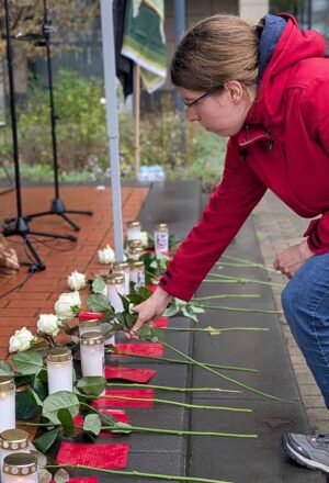Auch die Linken-Bundestagsabgeordnete Sonja Lemke legte in Dortmund Blumen nieder. Foto: Die Linke Dortmund