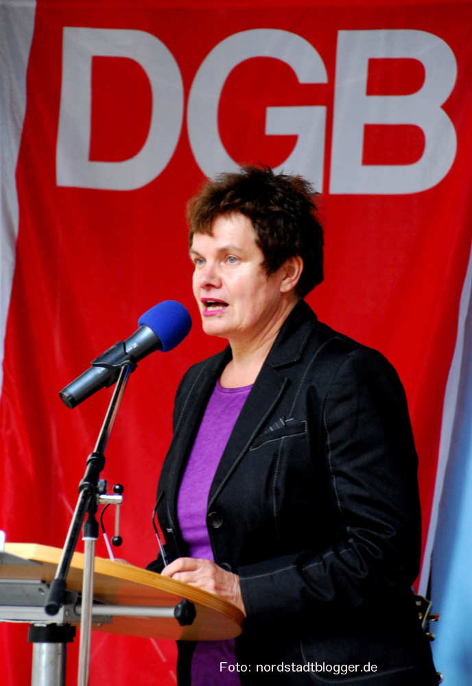 Außerdem erneuerte die DGB-Vorsitzende Jutta Reiter ihre klare Kampfansage gegen rechtsextreme Umtriebe in Dortmund und anderswo: Doch dafür müsse die soziale Wirklichkeit der Menschen so organisiert werden, dass alle Menschen gut leben könnten. Dies ließe den Nährboden der Rechtsextremen austrocknen. Allerdings müsse nicht nur die NPD verboten werden, sondern alle rechtsextremen Parteien: „Wir wollen nicht, dass mit Steuergeldern Hass und Gewalt finanziert werden.“