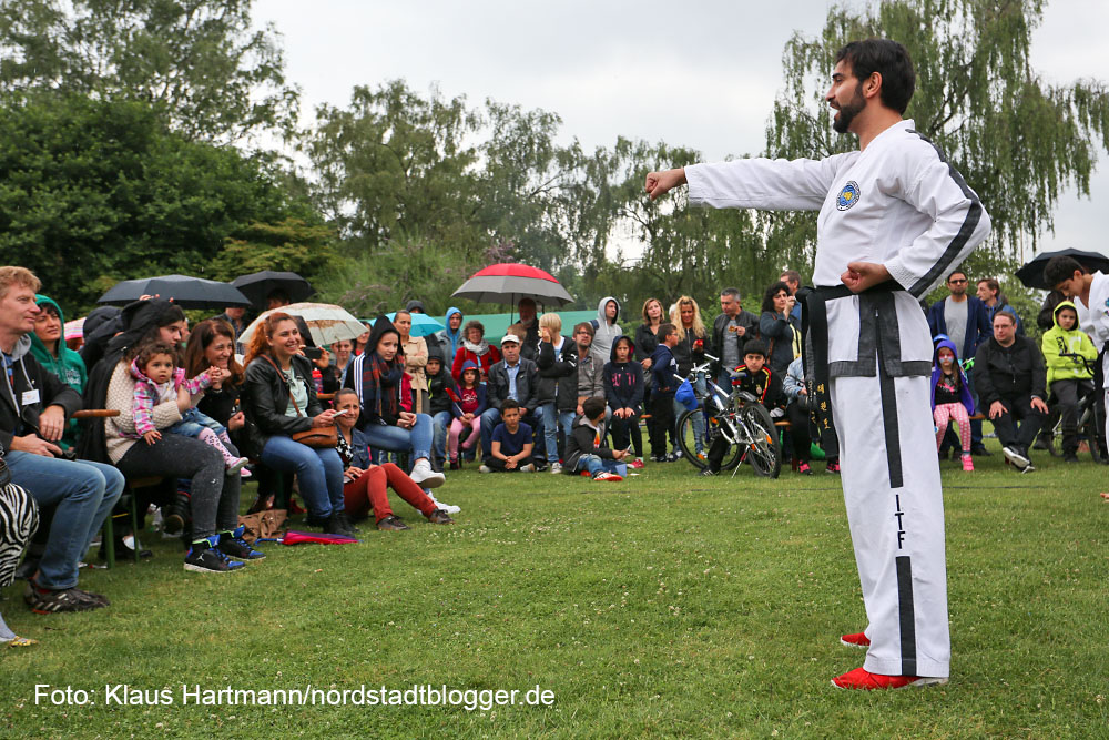 Vor allem die Aufführungen des Kinder-Zirkus Popcorn, der in der Freizeitstätte in Hörde unter Leitung von Martin Pittasch probt, gefielen dem Publikum wie auch die Demonstration des asiatischen Sports Taekwondo durch die Kinder und Jugendlichen des DJK Saxonia. Hier wurde eine Zugabe gefordert.