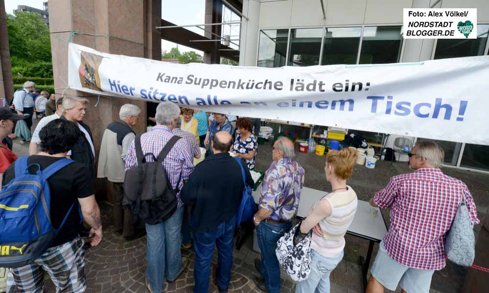 Die Kana-Suppenküche in der Nordstadt kocht fünf Mal pro Woche für bis zu 350 Menschen. Finanziert wird sie ausschließlich aus Spenden, die Aktiven arbeiten ehrenamtlich. Die Gemeinschaft lehnt Unterstützung von Staat, Stadt und Kirchen ab, um so die Unabhängigkeit der Suppenküche zu gewährleisten.