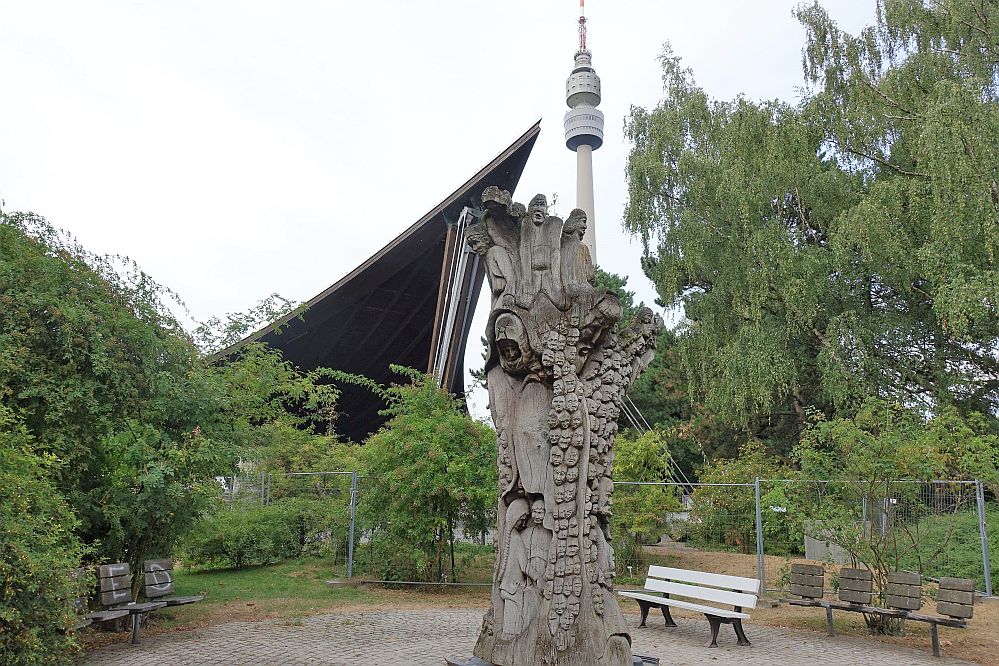 Seit sage und schreibe Ende 2012 ist das „Sonnensegel“ des berühmten Architekten Günter Behnisch (nach dessen Plänen auch das Olympische Dorf bei München gebaut wurde) für das Parkpublikum gesperrt. – Insofern, Entwarnung: man/frau sieht erst einmal gar nichts, oder – fast nix.