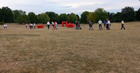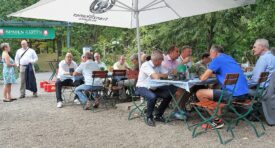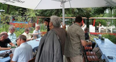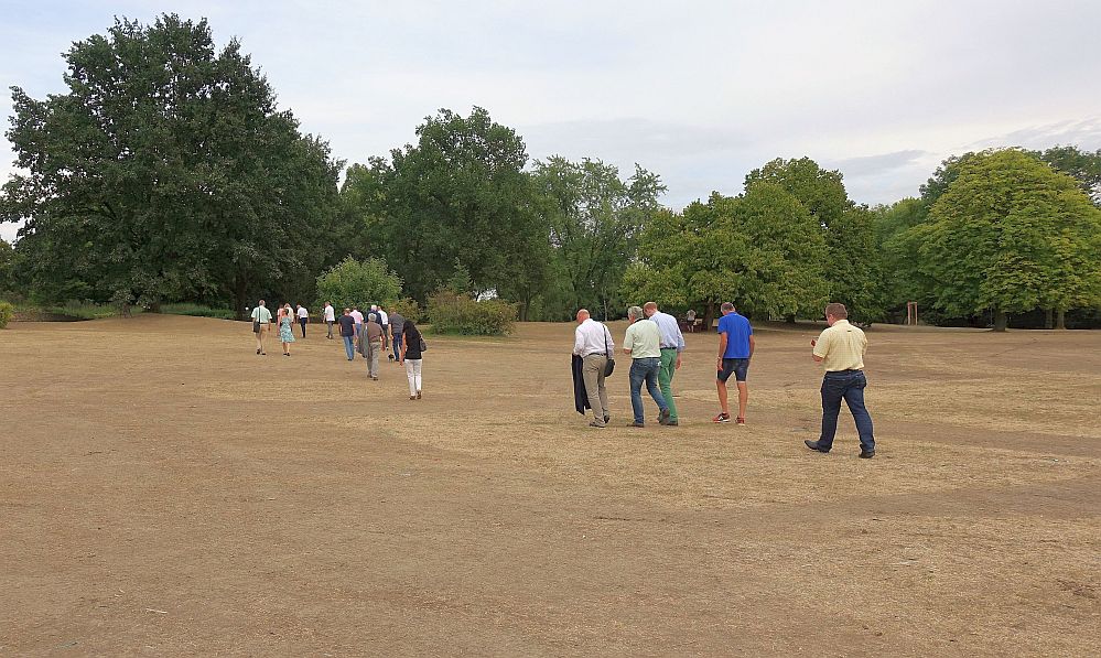 Hic Rhodus, hic salta: Diesmal ist es der Westfalenpark, wo sich die Abgeordneten-Gruppe trifft, bei gefühlt über 35 Grad Celsius im Schatten. Angesagt ist – zuhören. Und, war da nicht was?
