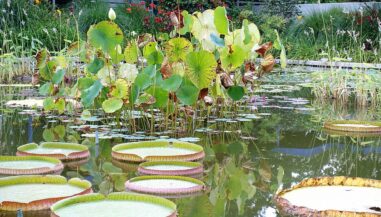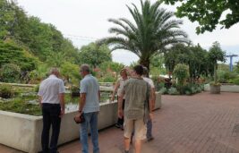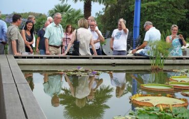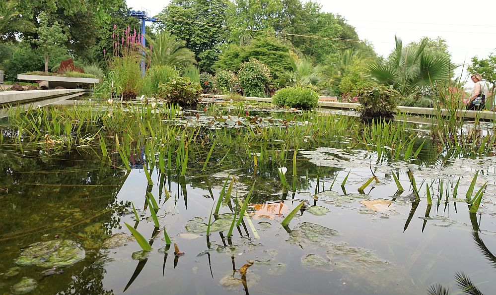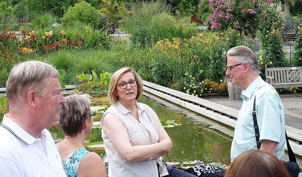 Es folgen Erläuterungen zu einer Reihe von Problemaspekten des angesprochenen Technologiedefizits in/an und zwischen den umliegenden Einrichtungen, wie Gastronomie oder Bassins. An den Seerosen, die hier keinesfalls den Winter überlebten, erfahren die CDU-Abgeordneten, dass für die Bewirtschaftung des hochgelegenen Verbindungskomplexes zu anderen Teilen des Parks vor allem ein neues Energiekonzept her müsse.