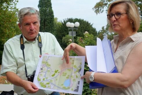 Mario Gräbel, Referent der CDU-Fraktion, und WP-Chefin Annette Kulozik: neue Pläne für die Zufahrt.