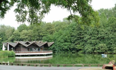 Dann geht es – endlich – Richtung des mutmaßlichen Endpunkts der Info-Tour: wieder hinab vom Aussichtspunkt, Richtung Süden, zum Seepavillon und zur Buschmühle, und diesmal glücklicherweise über einige Schattenwege … – Puh! – War da nicht „zufällig“ irgendwo auch ein Biergarten?