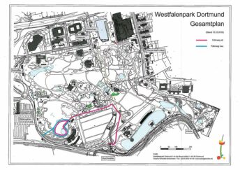 Ende der Baumaßnahme? Die Leiterin des Westfalenparks ist vorsichtig: In der nächsten Saison müsse man wohl noch mit dem alten Zufahrtssystem vorlieb nehmen, aber danach, also im Herbst 2019 solle es dann endlich losgehen. – Kosten des Umbaus? Etwa 630.000 Euro, zuzüglich 120.000 Euro Planungskosten; davon flössen 230.000 in den Weg und um die 400.000 Euro würden für die Flächen ausgegeben.