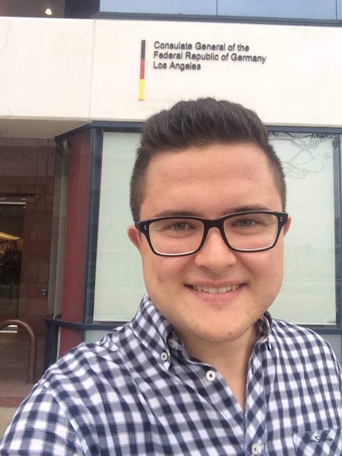 Aktuell ist er Praktikant beim Deutschen Generalkonsulat in Los Angeles. „Ich durfte ein langes und intensives Gespräch mit dem Generalkonsul führen, der von meinem Werdegang fasziniert ist.“