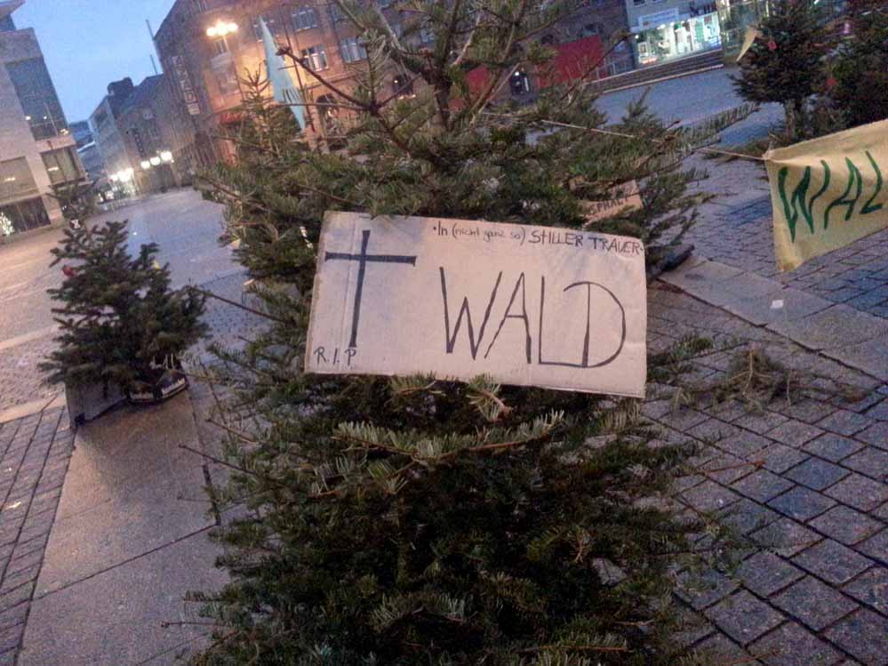 Entsorgte Weihnachtsbäume fordern „Wald statt Asphalt“ in Dortmund – Umweltschutz-Aktion von „Extinction Rebellion“